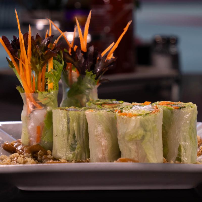 Fresh rice paper wrap with shrimp or tofu served with peanut sauce.